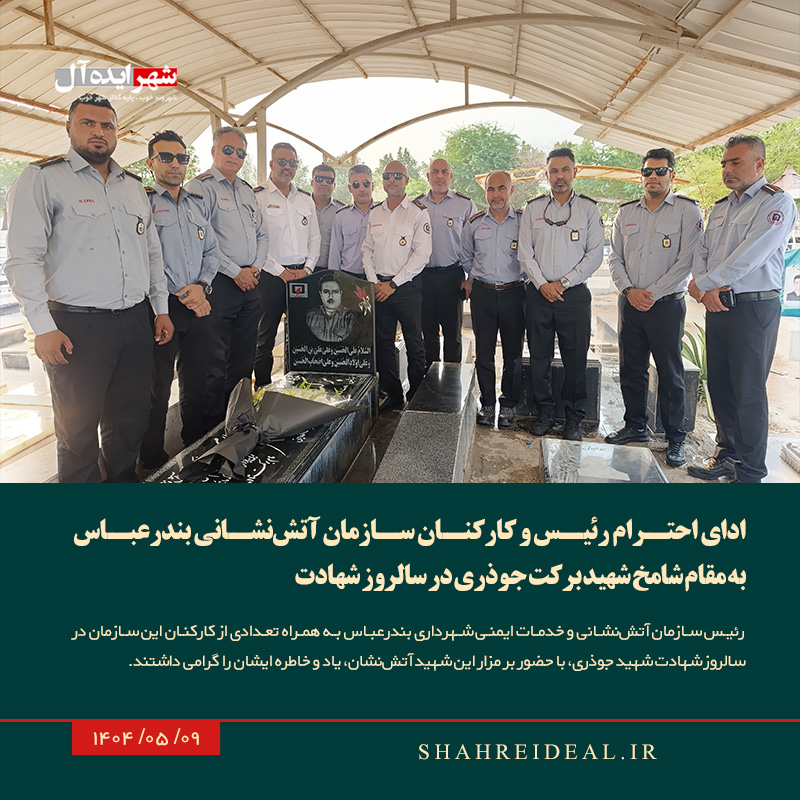 رئیس سازمان آتشنشانی و خدمات ایمنی شهرداری بندرعباس به همراه تعدادی از کارکنان این سازمان در سالروز شهادت شهید جوذری، با حضور بر مزار این شهید آتشنشان، یاد و خاطره ایشان را گرامی داشتند.